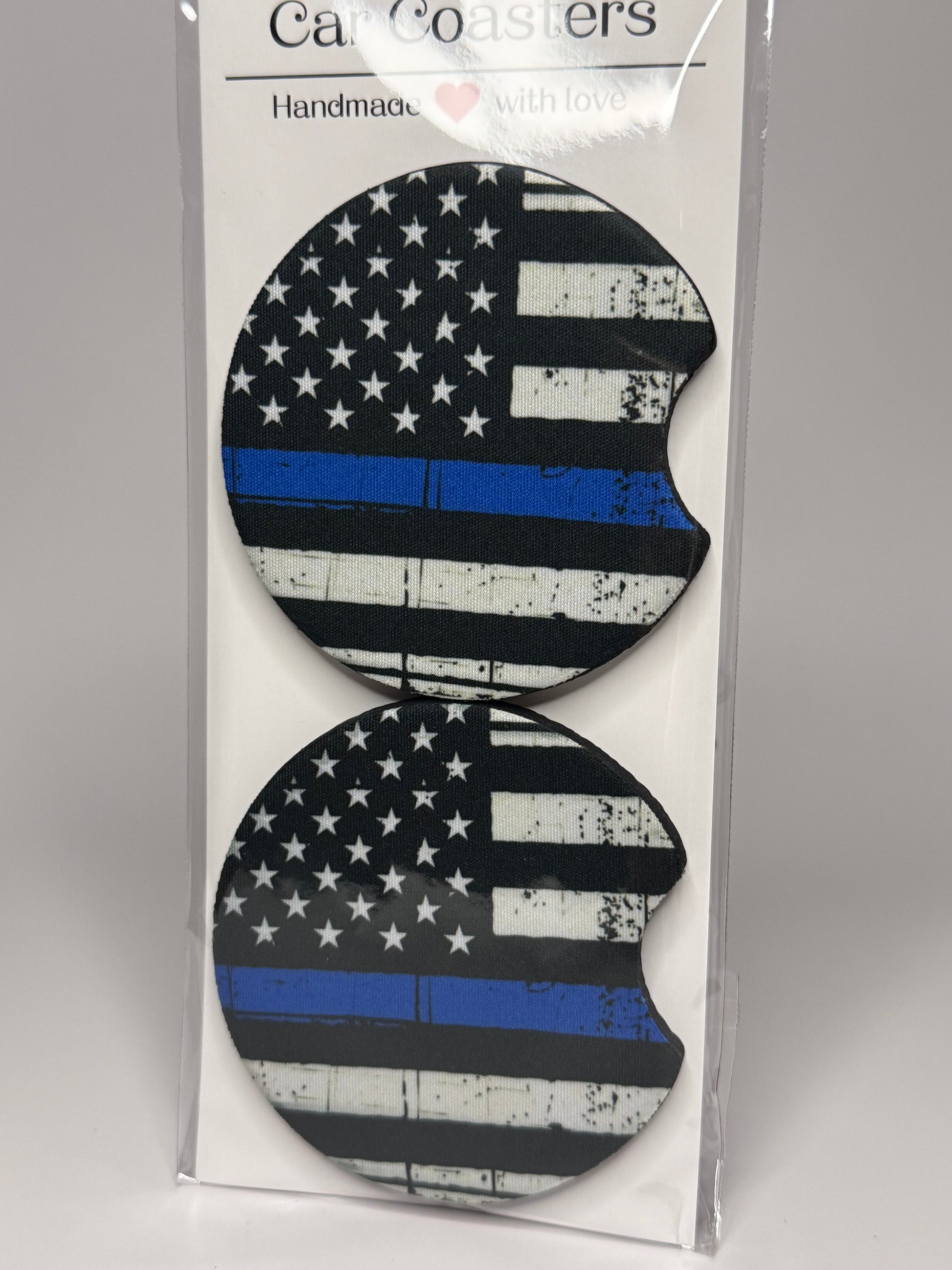 Protect your car from messy spills while showing your support for law enforcement with our "Back The Blue" car coaster set. Made with durable materials, these coasters not only protect your cupholders, but also proudly display your appreciation for our brave men and women in blue.